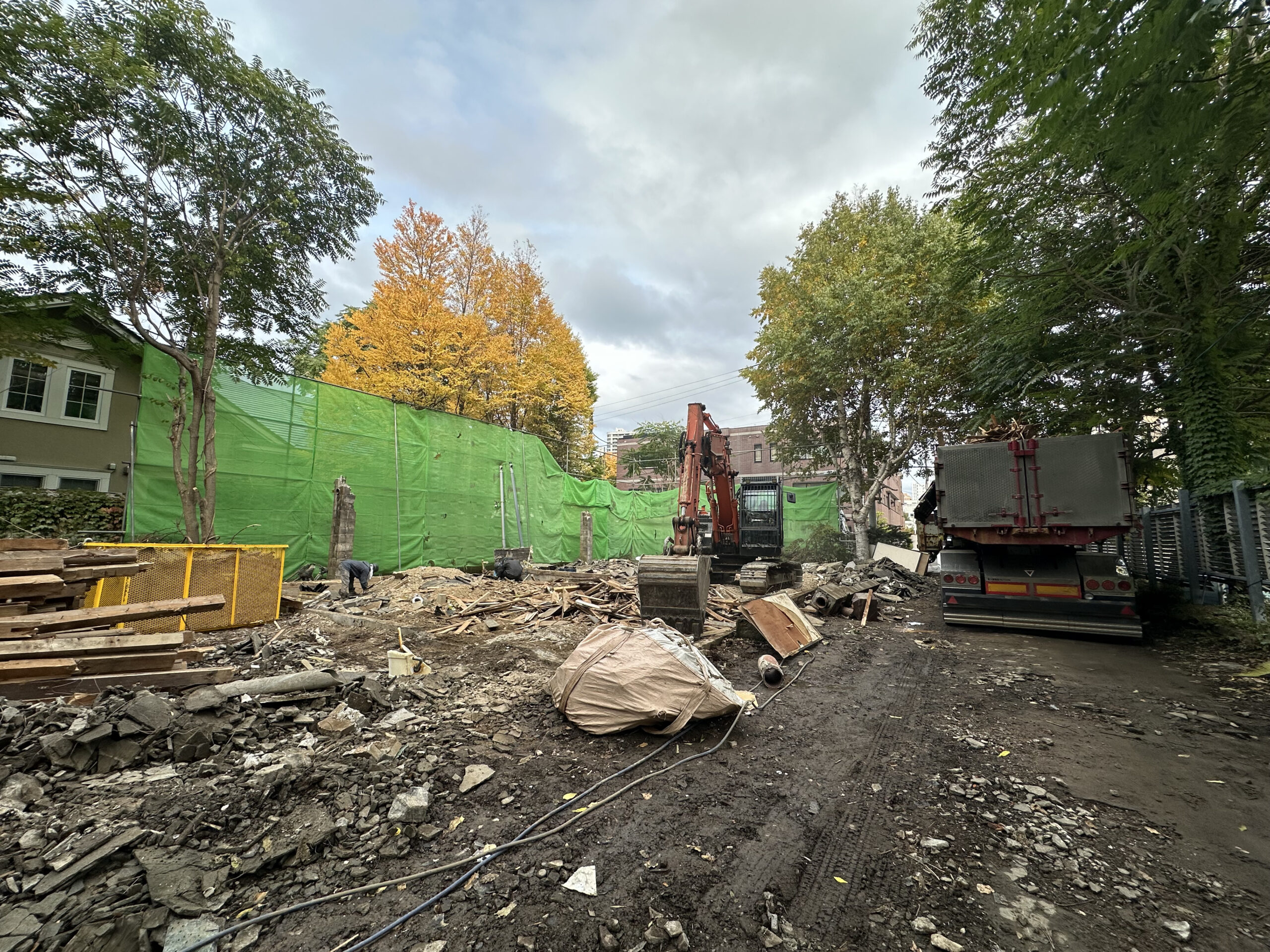 - 木造アパート2棟と樹木の伐採、伐根の工事をさせていただきました。 円山公園の風致地区のため、札幌市に樹木の伐採の許可を申請し撤去いたしました。 敷地が広くすべての作業を敷地内ですることができました。