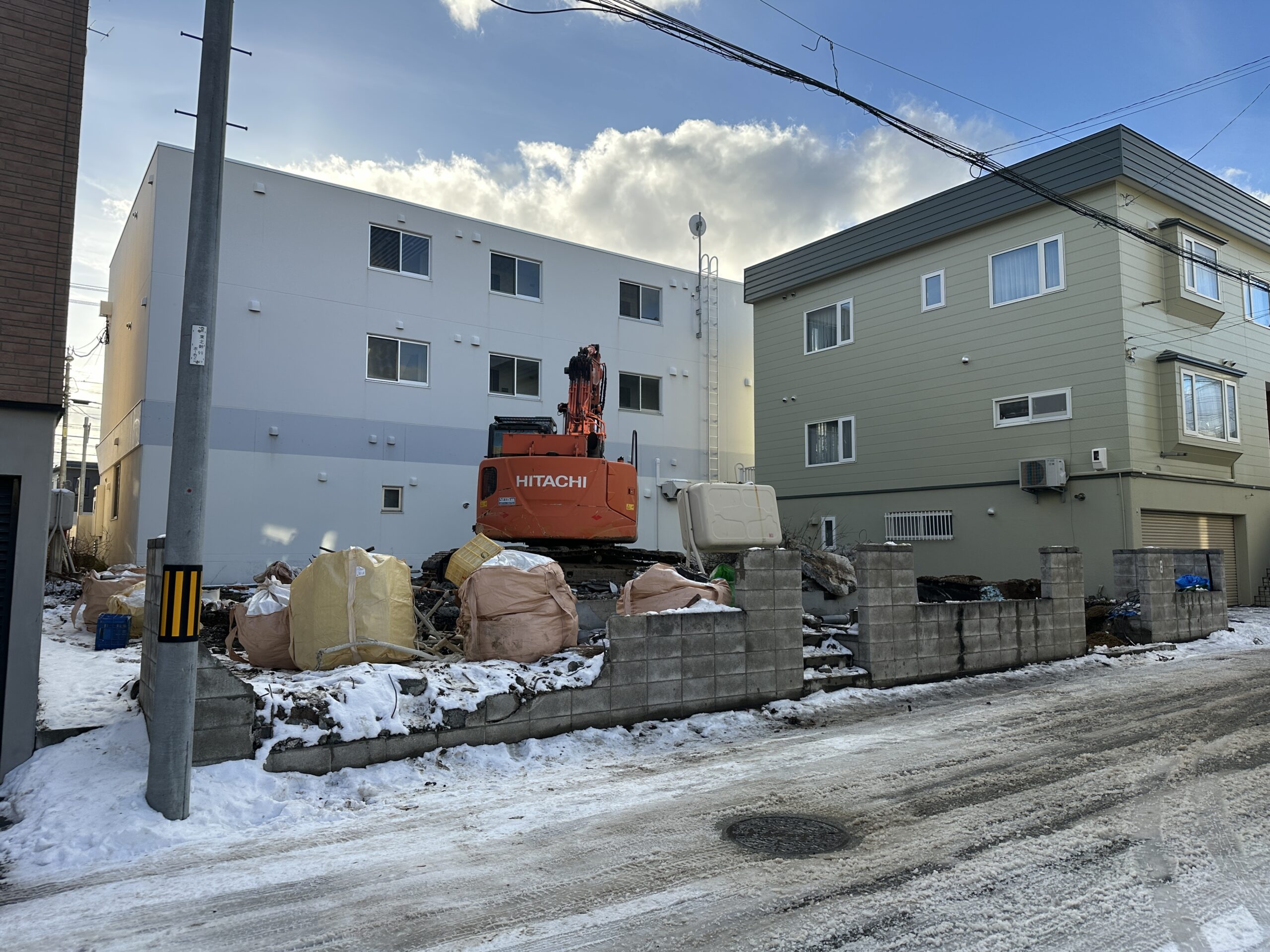 - 住宅、物置、塀、庭の解体でした。 重機作業スペースが無く、コンクリートブロック塀と物置を壊し敷地内に作業場所を確保いたしました。