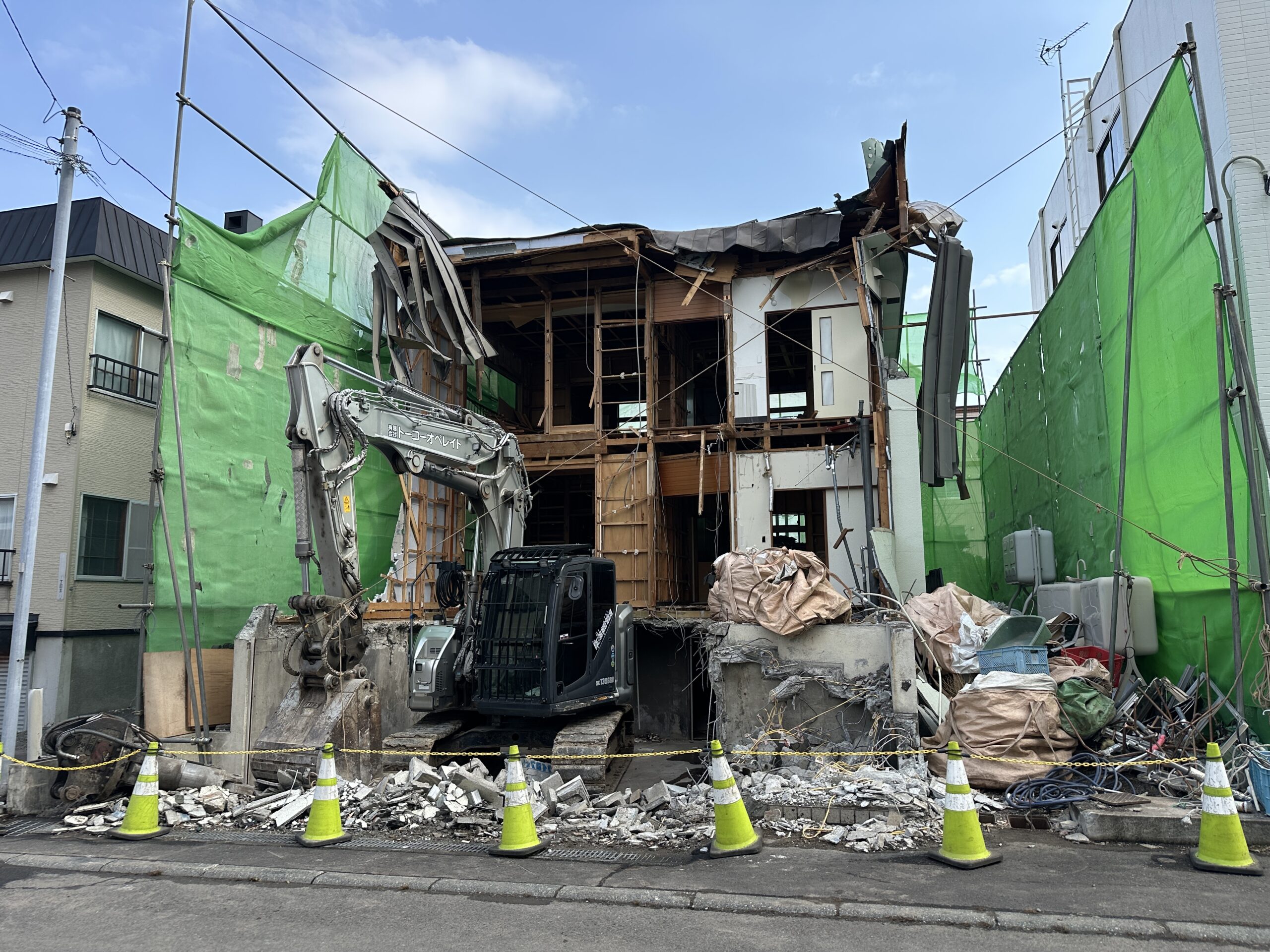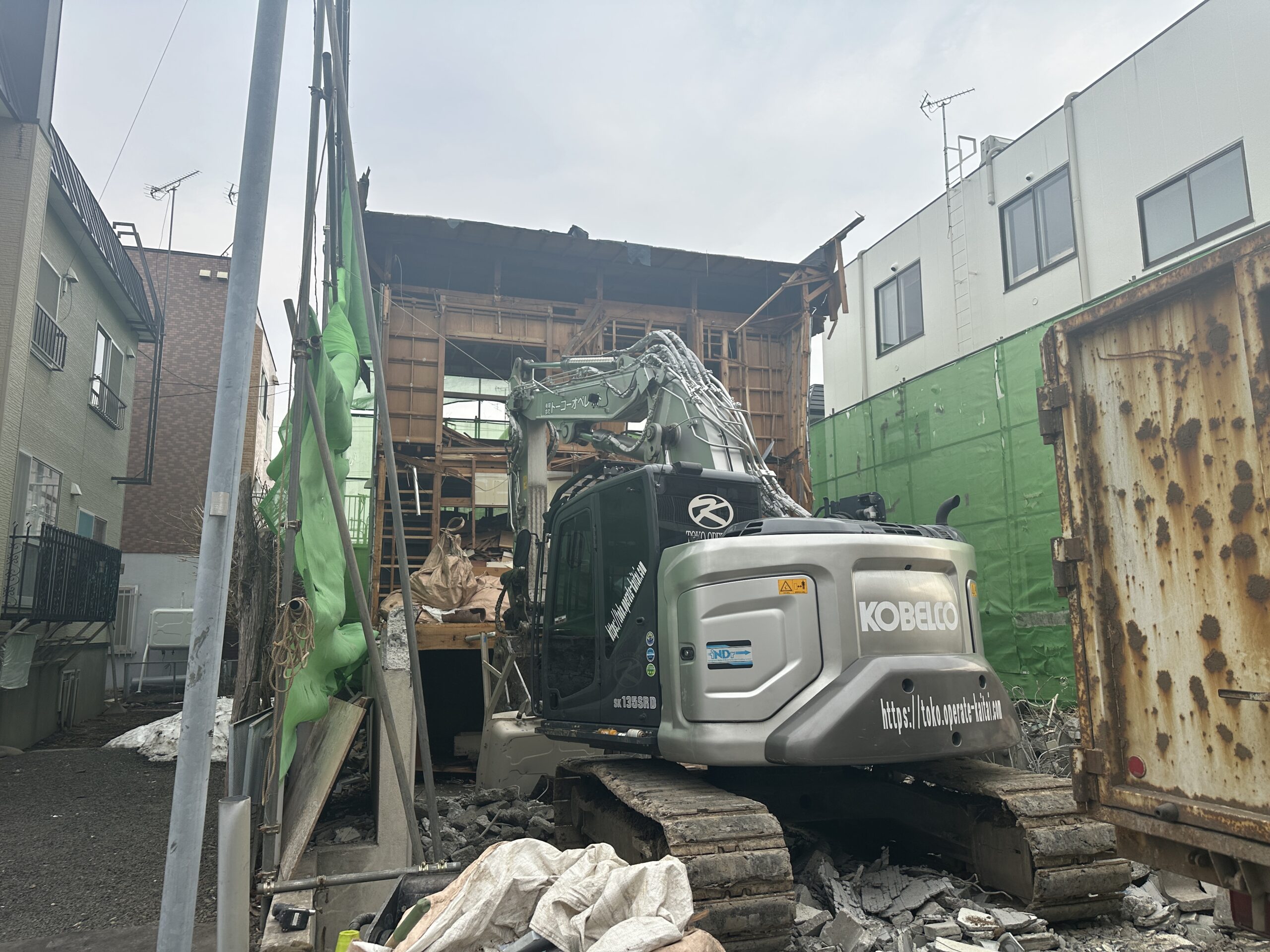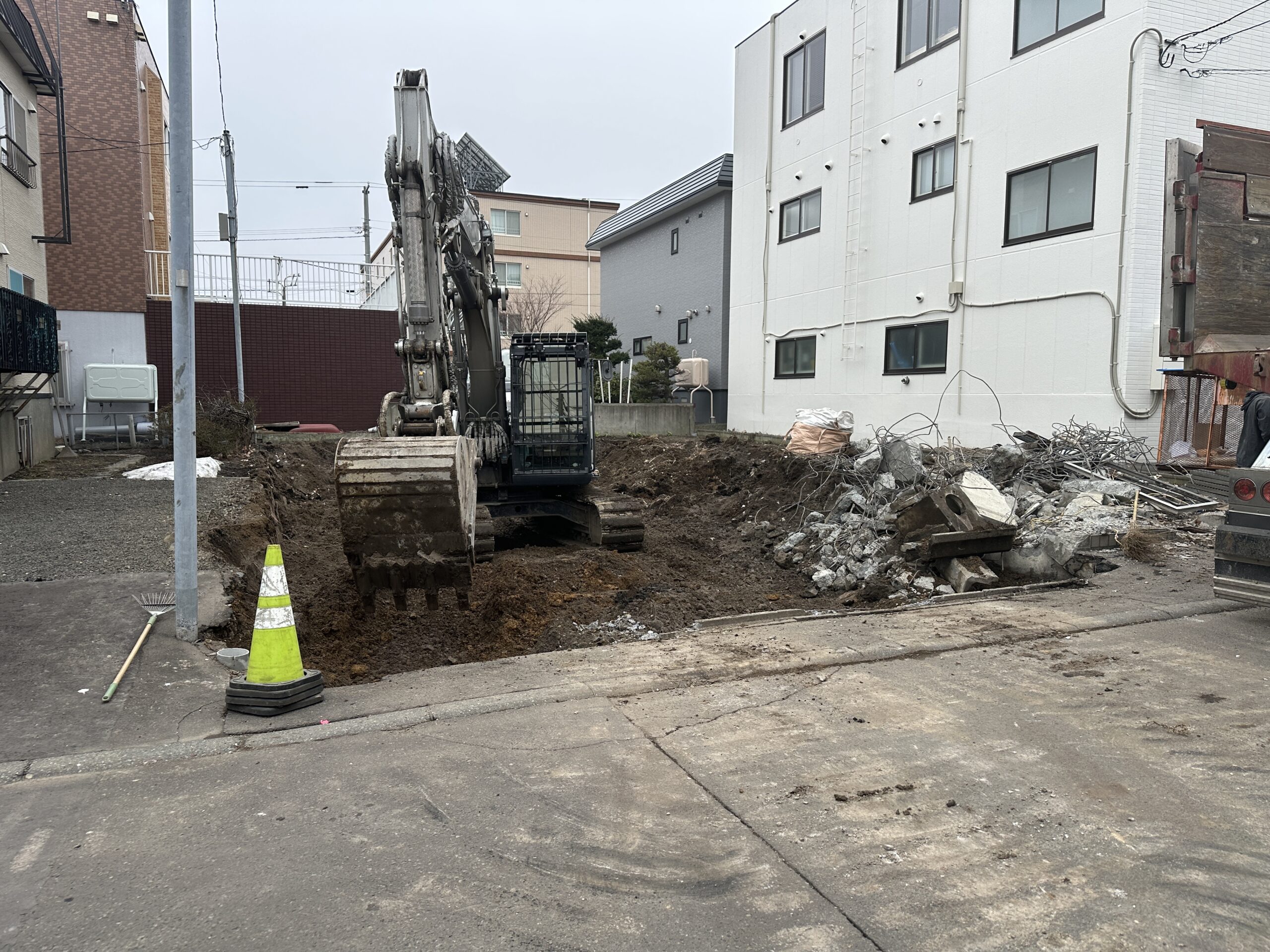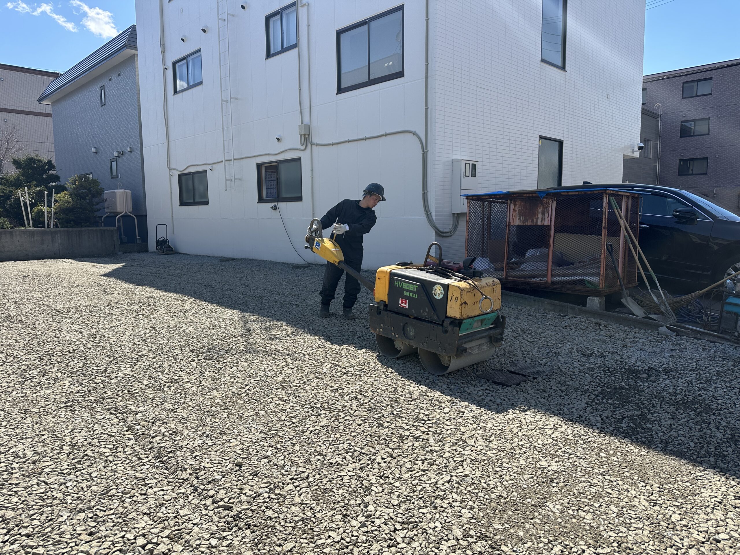 - 建物と庭の解体と駐車場造成の依頼でした。半地下の基礎高でしたので道路面から1.0mぐらい下がり、埋め戻し工事を行い、表土には砕石(40-0)を敷き単管柵を設置いたしました。